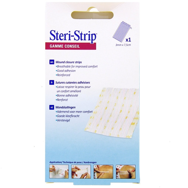 Les Steri-Strip peuvent être utilisées seules pour fermer les coupures ou en complément de fils et/ou agrafes afin de renforcer une suture existante. Leur texture douce et leur grande résistance leur permettent de rester en place même dans des conditions humides. Elles conviennent aussi aux enfants grâce à une pose et un retrait indolores.