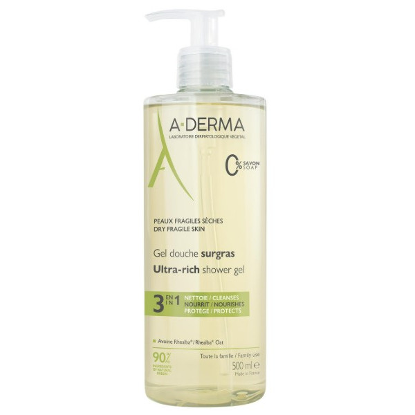 Le gel douche Surgras du laboratoire A-Derma est sans savon. 3-en-1, il permet de nettoyer en douceur, nourrit efficacement et protéger durablement les peaux fragiles et sèches du visage et du corps des adultes et des enfants dès 2 ans.
