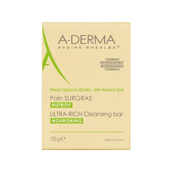 Le Pain surgras A-Derma nettoie en douceur, nourrit et protège les peaux fragiles et sèches. Texture crémeuse et moussante. Formule ultra-enrichie en émollients pour une peau qui ne tiraille plus après la douche.