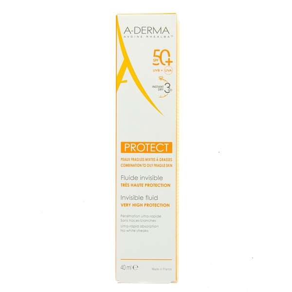 Aderma Protect Fluide Invisible Très Haute Protection SPF 50+ est un fluide de très haute protection (SPF 50+), spécialement formulé pour les peaux fragiles mixtes à grasses.