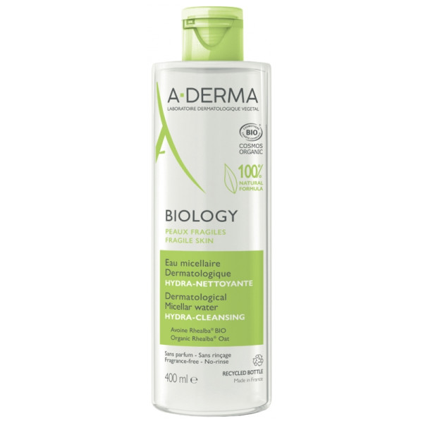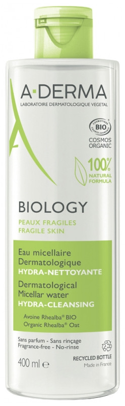 Biology Eau Micellaire Dermatologique Hydra-nettoyante du laboratoire A-Derma permet de démaquiller, de nettoyer et d'hydrater en douceur et efficacement les peaux fragiles.