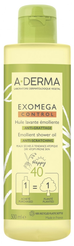 L’Huile lavante émolliente anti-démangeaisons Exomega Control est un produit A-DERMA destiné aux peaux sèches à tendance à l'eczéma atopique. Elle est testée sous contrôle dermatologique et pédiatrique, attestant de son efficacité et de sa haute tolérance. S’utilisant dès la naissance, chez l’adulte tout comme chez le nourrisson, elle nettoie et apaise tout en douceur. Elle s’utilise sur le corps et le visage pour une hygiène complète.