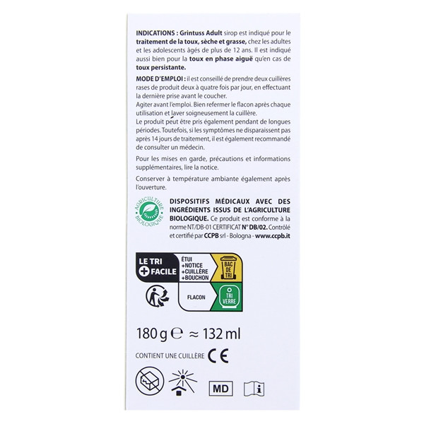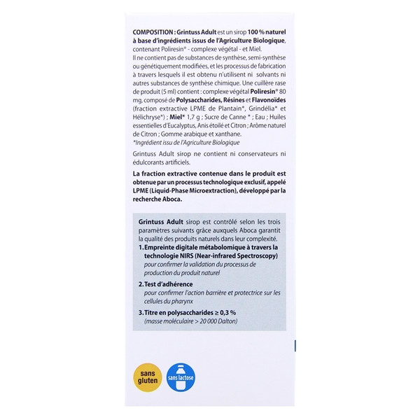 Grintuss Adult ne contient ni conservateurs ni édulcorants artificiels.