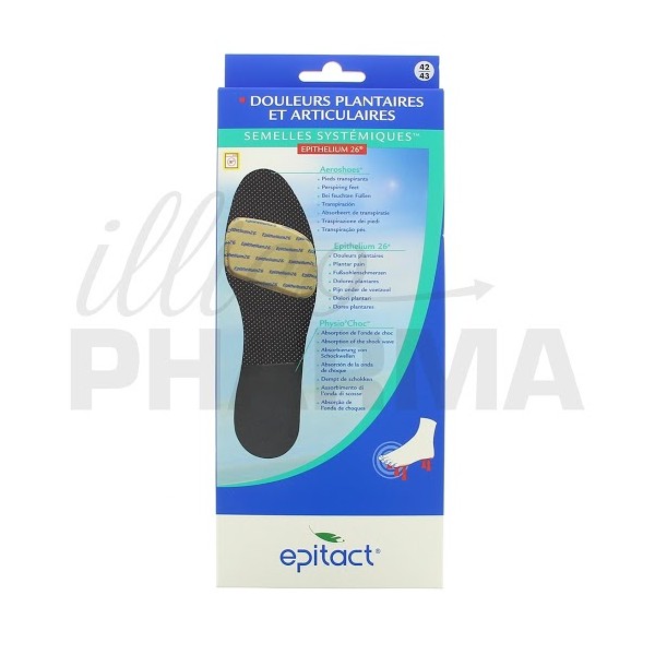 Les podologues des laboratoires Epitact ont élaboré les semelles Sytémiques pour calmer les gènes plantaires liées aux douleurs articulaires. Le Physio'ChocTM qui caractérise la zone talonnière des semelles absorbe les chocs sols/pieds et permet une moindre sollicitation de la colonne vertébrale pendant la marche. L'Epithelium 26 présent dans les semelles atténue efficacement les sensations douloureuses. L'action systémique de ces 2 actifs fournit un confort optimum au pied. Les semelles disposent également d'une membrane microporeuse Aeroshoes® pour absorber l'humidité dans les chaussures.