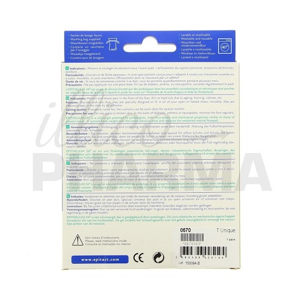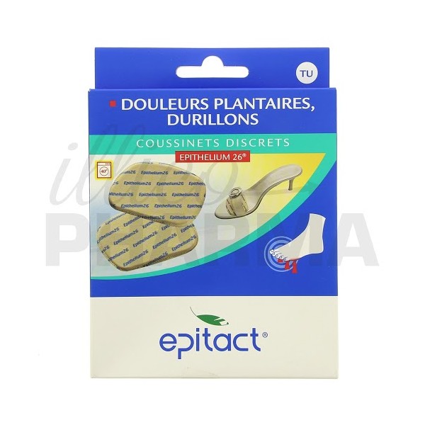 L'Epithelium 26, principal actif du coussin plantaire d'été Epitact apaise vos douleurs en répartissant les pressions subies par le capiton plantaire. Disponible en boîte d'une paire.