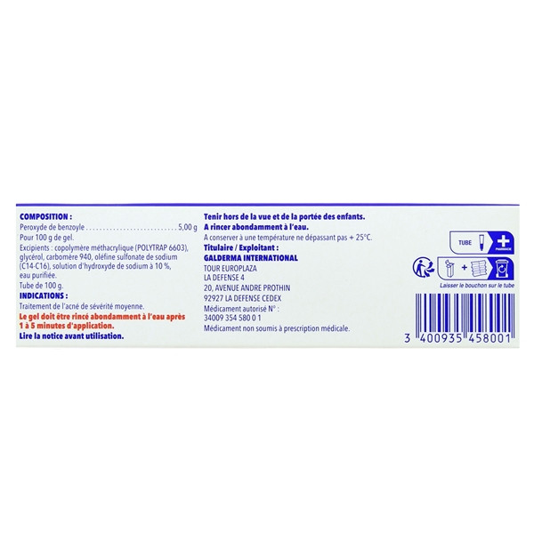 Ce médicament est un antiacnéique local qui contient du peroxyde de benzoyle. Il agit essentiellement en détruisant certains germes responsables de l'inflammation du comédon et de la formation de pustules.