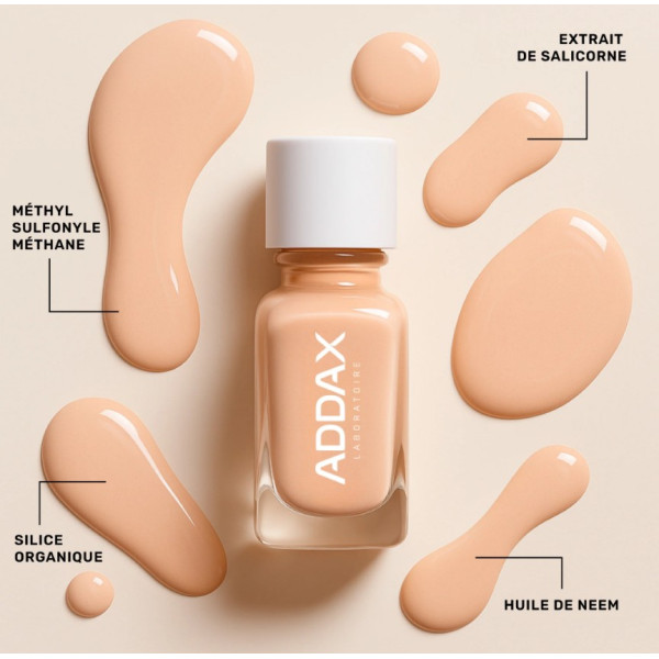 Aircolor® Vernis à Ongles Respirant 04 Naturel du laboratoire Addax est parfait à utiliser entre deux applications de vernis semi-permanents, entre deux poses de gel ou à après un traitement contre les mycoses. Ce vernis est compatible avec le traitement mycoflash®.