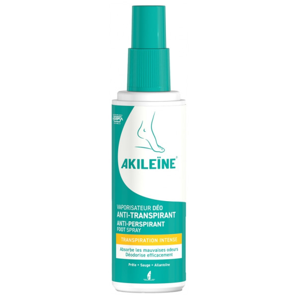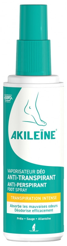 Le Vaporisateur Déo Anti-Transpirant pour les pieds présenté par la marque Akiléïne s'adresse aux individus sujets à la transpiration intense. Il contient des agents actifs qui absorbent les mauvaises odeurs et désodorisent efficacement les pieds.