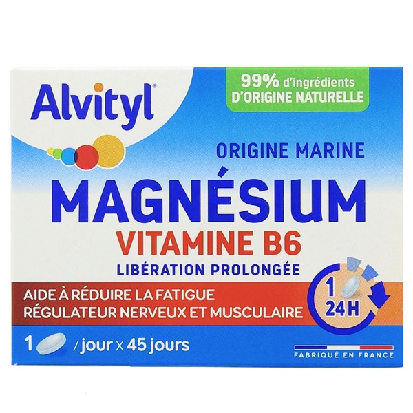 Alvityl Magnésium Vitamine B6 est un complément alimentaire composé à 99 % d’ingrédients d’origine naturelle. Il réduit la fatigue d’une part et apporte une sérénité d’autre part. C’est un produit à libération prolongée. Ainsi, ses bienfaits durent pendant un certain moment.