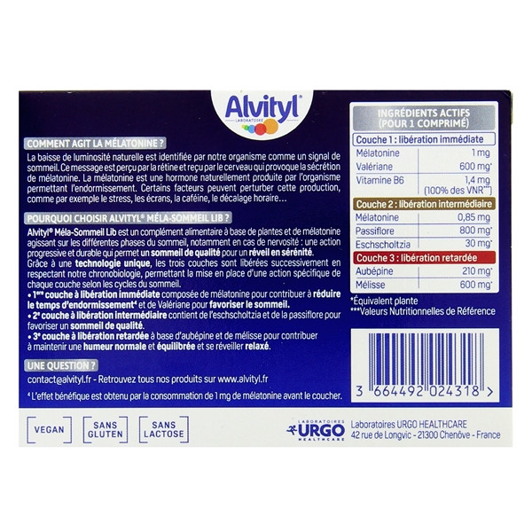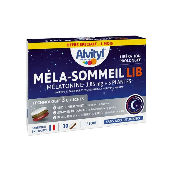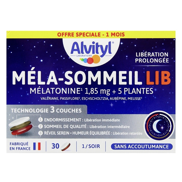 - Prendre 1 comprimé de Méla-Sommeil LIB Alvityl le soir. Avaler idéalement 30 minutes avant le coucher pour une efficacité optimale.