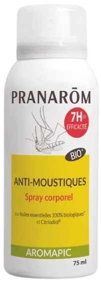 Le spray anti-moustique Corporel Bio 75 ml Aromapic de Pranarôm permet de protéger la peau contre les piqûres de moustiques européens et tropicaux. Son petit format permet de le transporter facilement. Efficace pendant 7 heures.