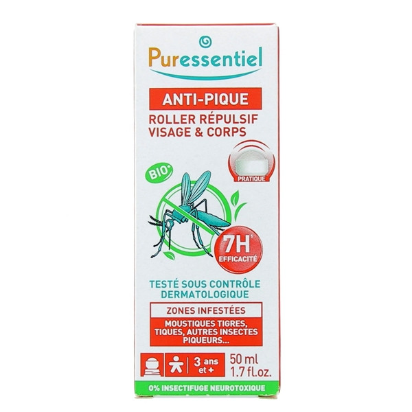Le Roller Répulsif Anti-Pique Bio pour le corps et le visage de Puresssentiel est indiqué pour repousser les moustiques, les moustiques tigres, les tiques et autres insectes piqueurs afin d'éviter les piqûres. Pratique, ce Roller Anti-Pique est toujours à portée de main et s'applique facilement et rapidement.