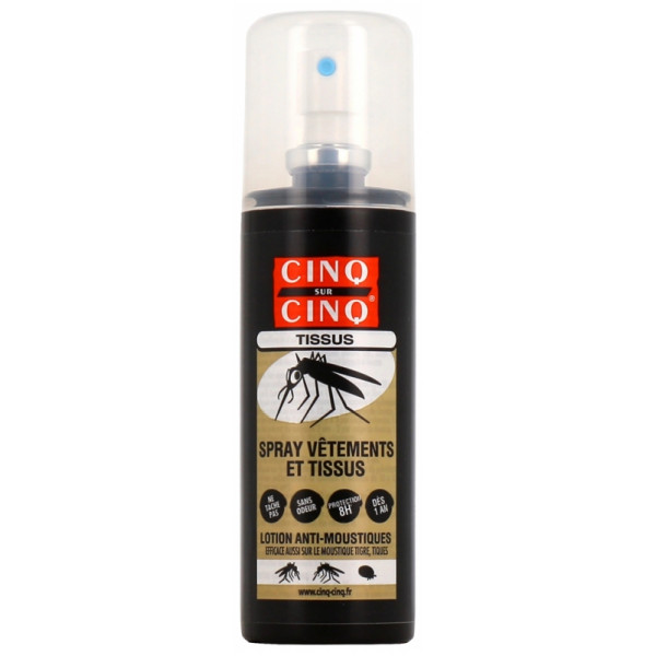 Pour une protection optimale, il est indispensable, en plus des sprays anti-moustiques pour la peau, d'imprégner ses vêtements. Sous forme de spray, la lotion anti-moustiques vêtements et tissus Cinq sur Cinq ne tache pas et est sans odeur.