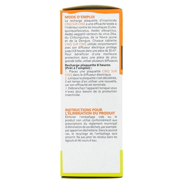 Tablette recharge pour diffuseur électrique antimoustique. Insecticide et répulsif. Protège une pièce de 30 m3 durant 8 heures sans dégager ni fumée, ni odeur. Le changement de couleur du bleu vers le blanc signifie que la cartouche est usagée.