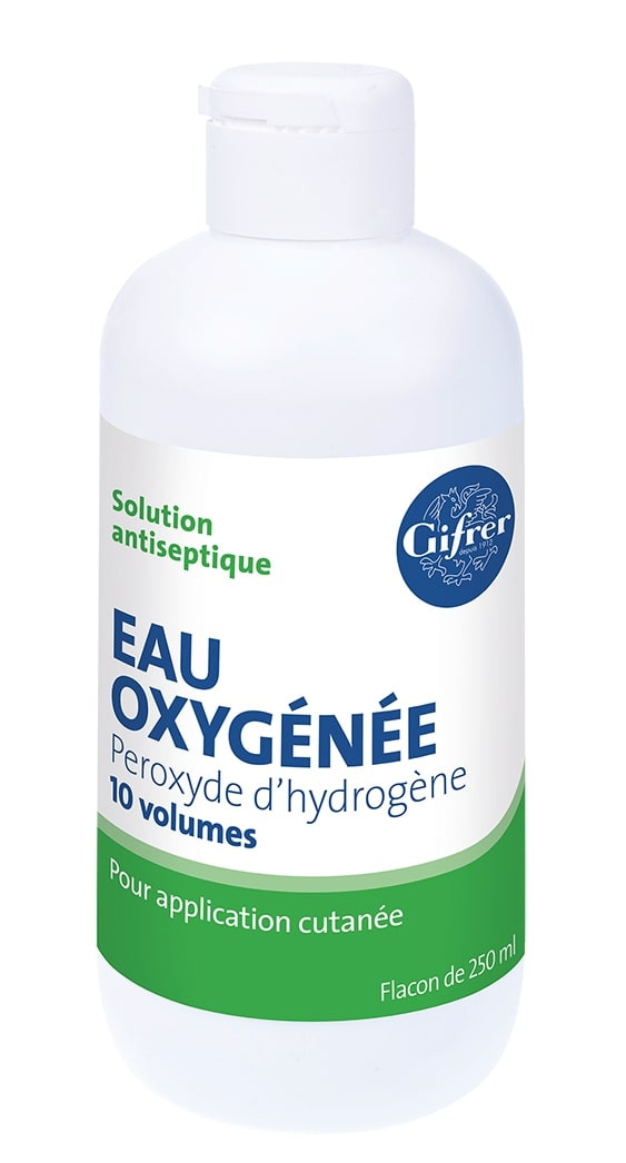 Disponible en flacon de 250 ml d'eau oxygénée 10 volumes.