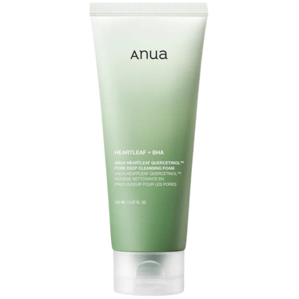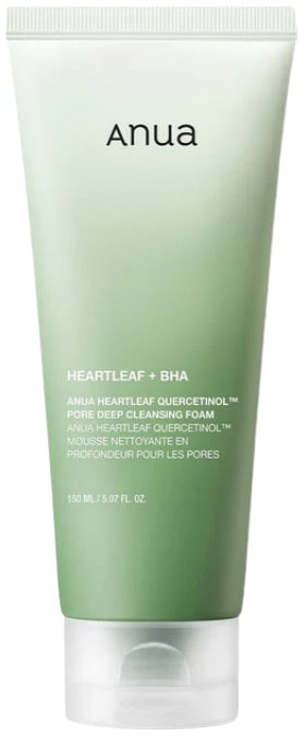 Heartleaf Quercetinol Pore Deep Clean Foa de la marque coréenne Anua est une mousse nettoyante utilisée pour nettoyer les pores en profondeur et exfolier en douceur les cellules mortes des peaux normales.