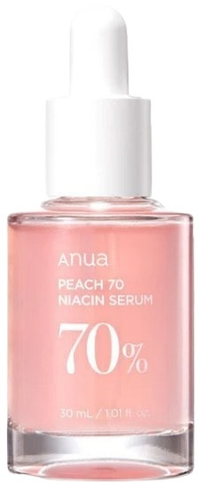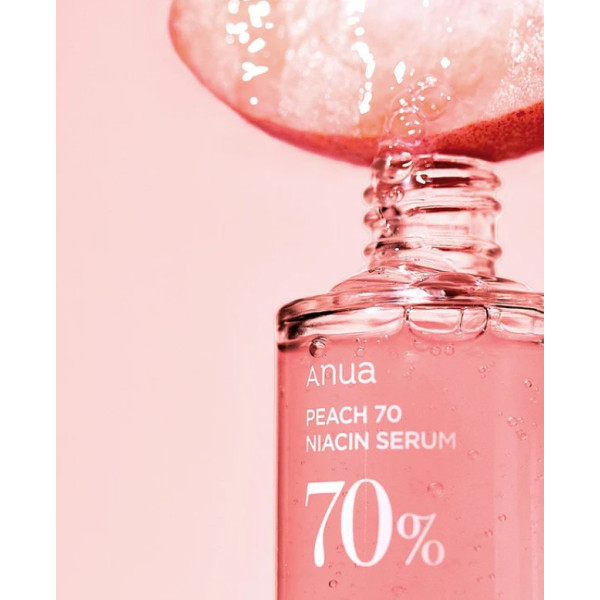Peach 70 Niacin Serum de la marque coréenne Anua est un sérum éclatant infusé de pêche et de niacinamide pour révéler une peau éclatante, lisse et douce.