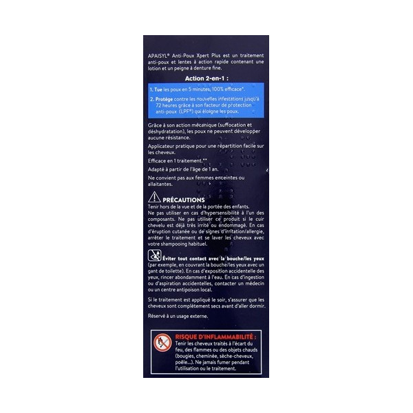 Apaisyl Anti-Poux Xpress Plus est une lotion traitante anti-poux et lente à action rapide et 100 % efficace. Cette lotion tue les poux et les lentes en 5 minutes tout en offrant une action protectrice contre les nouvelles infestations jusqu'à 72 h.