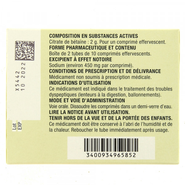 Le citrate de betaïne est indiqué en cas de problèmes de digestion.