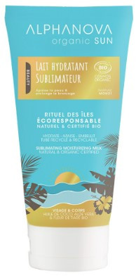 Le lait hydratant sublimateur est formulé à base d'huile de Coco, d'Aloé Vera et de Fleur de Tiaré bio aux vertus apaisantes, réparatrices et nourrissantes. Ce lait s'applique sur la peau du visage et du corps suite à une exposition au soleil pour l'apaiser et prolonger le bronzage. Il possède une texture non grasse et laisse un agréable parfum solaire sur la peau.