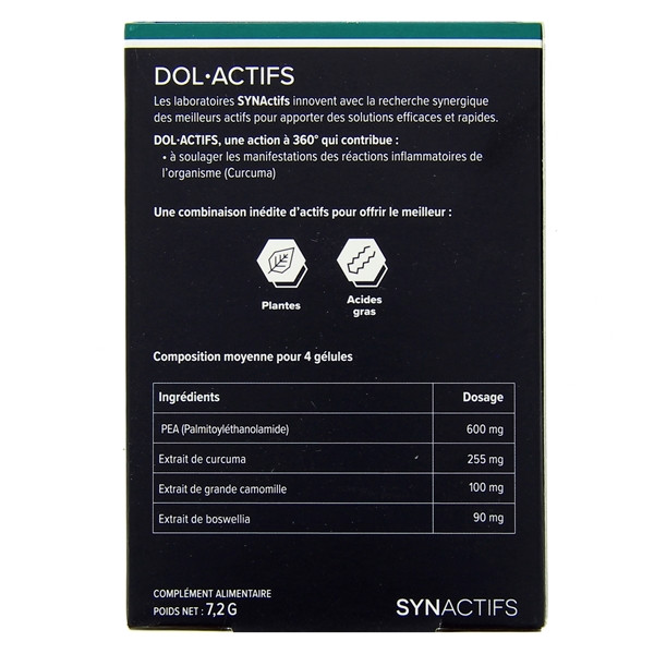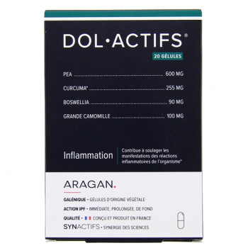 Synactifs DolActifs des laboratoires Aragan est un complément alimentaire à base de plantes et d'acides gras pour contribuer à soulager les manifestations des réactions inflammatoires de l'organisme.