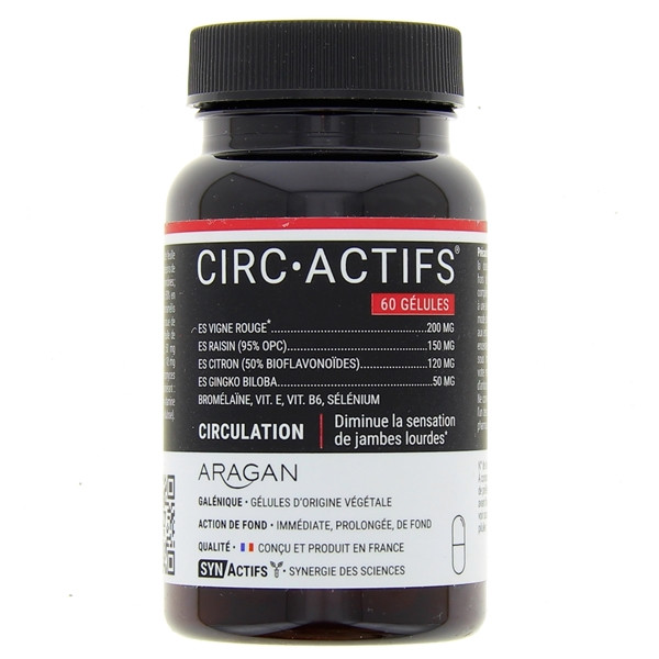 Synactifs CircActifs x60 gélules a été conçu par le laboratoire Aragan pour aider à lutter contre le gonflement des jambes, des chevilles, des pieds dû à une mauvaise circulation sanguine. Ce complément alimentaire contribue à l’amélioration de la microcirculation, à la réduction de la sensation de jambes lourdes et au maintien de la santé du système veineux.