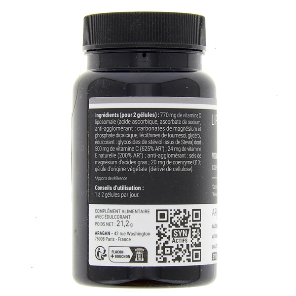 Synactifs Liposo-C Actifs des laboratoires Aragan est un complément alimentaire formulé à base d'une association de vitamine C sous une forme loposomale et d'un complexe Synergie-C. Il contribue à réduire la fatigue et aide au bon fonctionnement du système immunitaire.