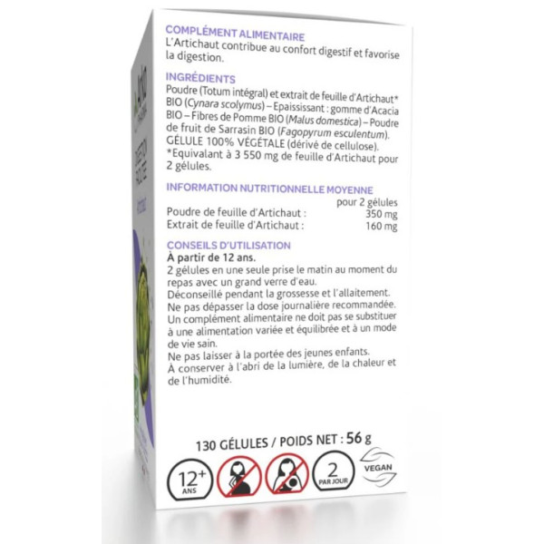 Il est élaboré à partir de poudre et d’extrait de feuilles d’artichaut, issu de l’agriculture biologique. Cette formule naturelle utilise le Totum intégral de sorte à garantir la restitution complète des actifs de la plante.