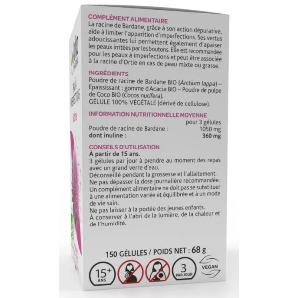 Les Arkogélules Bardane Bio des laboratoires Arkopharma sont indiquées pour les peaux à imperfections. Elles contribuent à limiter l'apparition des imperfections et apaisent les peaux irritées par les boutons.