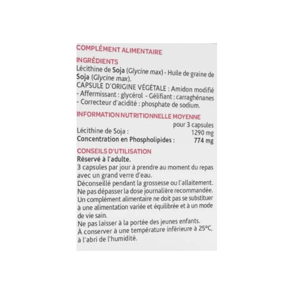 La formulation de ce produit d’Arkopharma garantit une concentration élevée en phospholipides, à savoir 774 mg pour trois capsules quotidiennes. Les gélules sont enrobées dans une enveloppe 100 % végétale, composée d’amidon modifié, de glycérol et de carraghénanes. Cette origine végétale assure la compatibilité avec un régime végane et exclut l’utilisation d’additifs synthétiques ou de colorants.