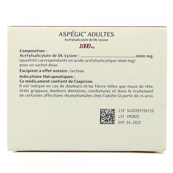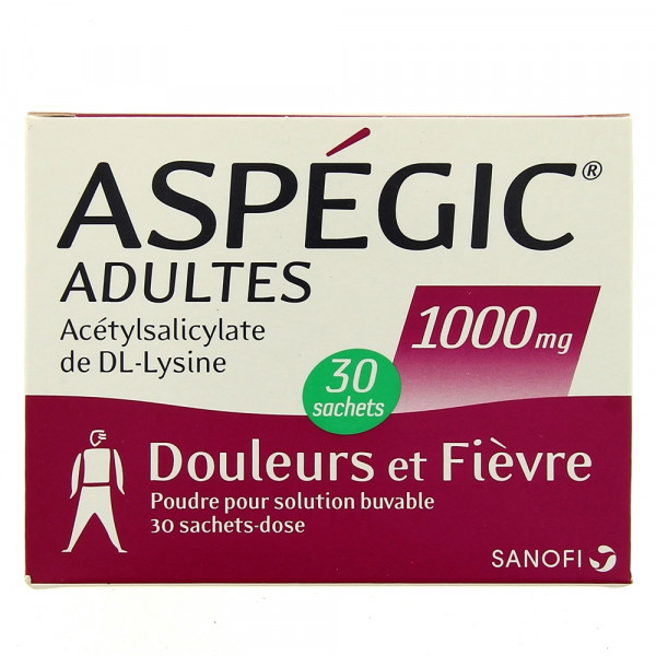 Aspegic 1000mg est disponible en boîte de 30 sachets