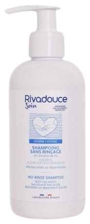 Le Shampoing Sans Rinçage de la gamme Soin du laboratoire Rivadouce est indiqué pour le lavage des cheveux sans eau ni rinçage des adultes alités ou dépendants. Il convient aux cheveux et au cuir chevelu sensibles.