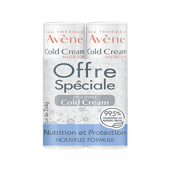 Tout comme la peau du visage, les lèvres nécessitent aussi une attention particulière pour rester douces, hydratées et protégées contre les agressions extérieures. Le Cold Cream stick à lèvres Avène 2x4g est spécialement formulé pour offrir à vos lèvres une hydratation intense et une protection optimale. Ce soin est spécifiquement utile durant les périodes de froid intense et dans des conditions climatiques rigoureuses. Enrichie en Cold Cream naturel, cette crème possède des propriétés apaisantes, nourrissantes et réparatrices pour lutter efficacement contre les lèvres sèches, gercées et/ou abîmées.