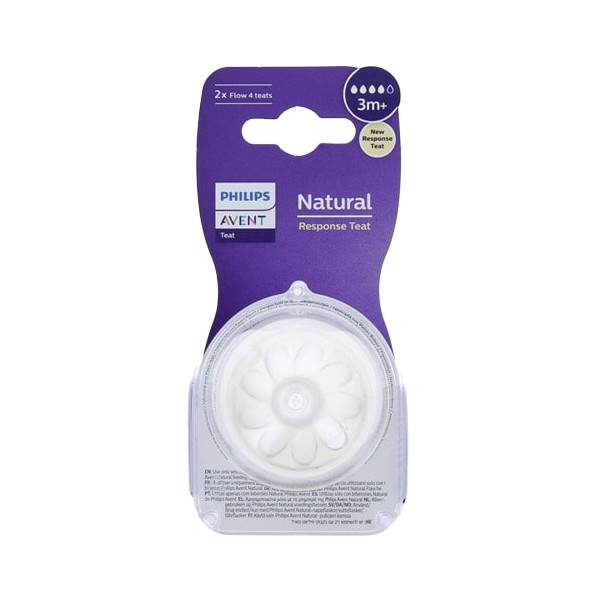 Natural Response Avent Tétines Débit 4 x2 sont conçues pour les bébés de 3 mois et plus. Leur forme anatomique inspirée de celle du sein maternel est instinctivement reconnue par les nourrissons et suscite naturellement une prise en bouche, facilitant ainsi l’alternance entre l’allaitement au sein et le biberon.