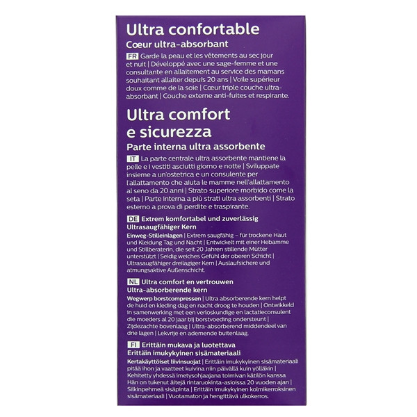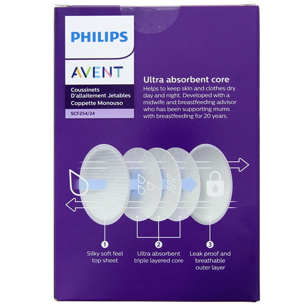 Les Coussinets d'Allaitement Jetables de la marque Avent sont ultra-confortables et possèdent un cœur ultra-absorbant. Ces coussinets d'allaitement gardent la peau et les vêtements au sec jour et nuit pour un confort optimal.