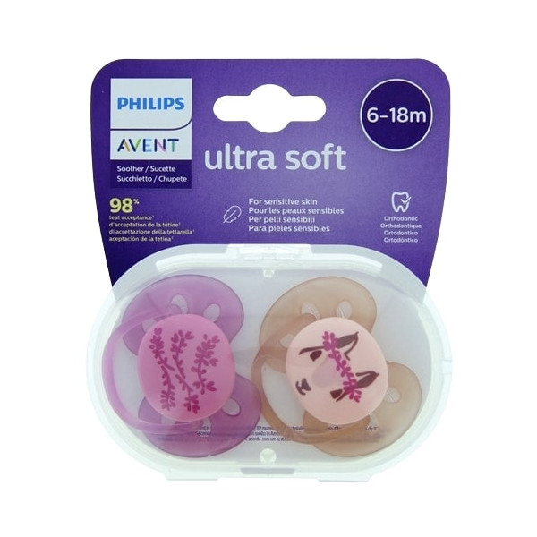 Sucettes Ultra Soft 6-18m x2 Rose Avent