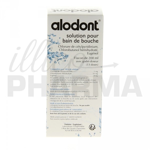 - Adulte : 1 bain de bouche avec le contenu du godet-doseur, 3 fois par jour.