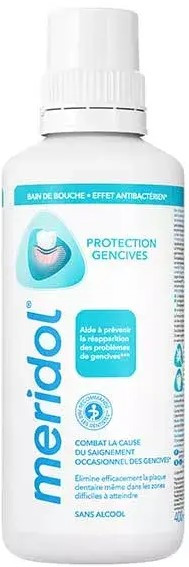 Le bain de bouche Protection Gencives de la marque Méridol est idéal pour combattre la cause de l'irritation et du saignement occasionnel des gencives et pour préserver une bonne hygiène bucco-dentaire.
