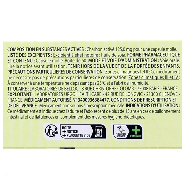 Le médicament Charbon Belloc est disponible en boîte de 60 capsules.