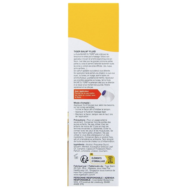 Baume du Tigre Fluide permet de détendre et d’apaiser les tensions et le stress par des massages. Il s’agit d’un produit nomade et innovant pouvant être utilisé n’importe où et n’importe quand. Il s’adresse aux sportifs et aux personnes ayant un mode de vie actif. Ce dispositif permet une application sans contact avec les mains.