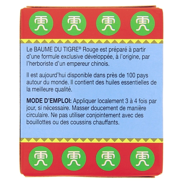 L'authentique Baume du tigre Rouge Tiger Balm est préparé à partir d'une formule exclusive développée, à l'origine, par l'herboriste d'un empereur chinois. Il procure un effet chauffant pour apaiser les douleurs musculaires ou articulaires du quotidien (travail, activité, sport...). Il est parfait en massage de préparation avant l'effort.
