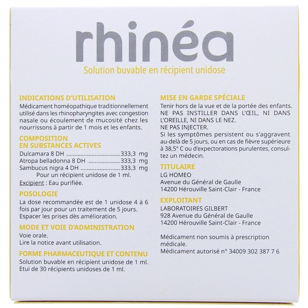 Rhinéa Solution Buvable des laboratoires Gilbert est un médicament homéopathique traditionnellement utilisé dans les rhinopharyngites avec congestion nasale ou écoulement de la mucosité chez les enfants et les nourrissons à partir de 1 mois.