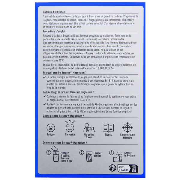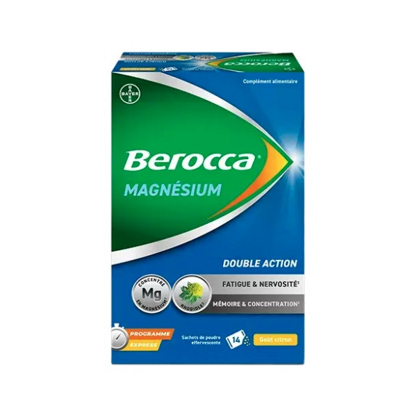 De Berocca, Magnésium Citron est un complément alimentaire qui vous soutient en cas de fatigue physique ou mentale. Son usage se révèle particulièrement utile durant les périodes stressantes, qu’il s’agisse d’un pic de travail, d’examens ou d’un rythme de vie intense.