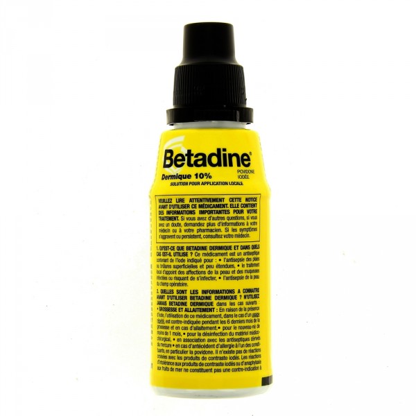 Évitez l'usage prolongé de ce médicament, notamment chez l'enfant, sur les muqueuses et sur des surfaces étendues ou profondément lésées, sans l'avis de votre médecin : risque de passage de l'iode dans le sang, susceptible d'entraîner une perturbation du fonctionnement de la thyroïde.