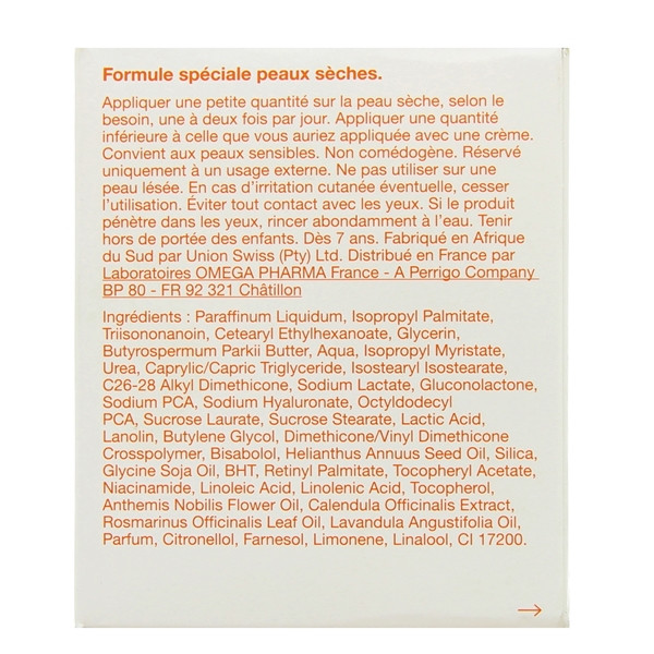 Paraffinum Liquidum, Isopropyl Palmitate, Triisonananoin, Cetearyl Ethylhexanoate, Glycerin, Butyrospermum, Parkii Butter, Aqua, Isopropyl Myristate, Urea, Caprylic/Capric Triglyceride, Isostearyl Isostearate, C23-28 Alkyl Dimethicone, Sodium Lactate, Gluconolactone, Sodium PCA, Sodium Hyaluronate, Octyldodecanol PCA, Sucrose Laurate, Sucrose Stearate, Lactic Acid, Lanolin, Butylene Glycol, Dimethicone/Vinyl Dimethicone Crosspolymer, Bisabolol, Helianthus Annuus Seed Oil, Silica, Glycine, Soja Oil, BHT, Retinyl Palmitate, Tocopheryl Acetate, Niacinamide, Linoleic Acid, Linolenic Acid, Tocopherol, Anthemis Nobilis Flower Oil, Calendula Officinalis Extract, Rosmarinus Officinalis Leaf Oil, Lavandula Angustifolia Oil, Parfum, Citronellol, Farnesol, Limonene, Linalool, CI17200.