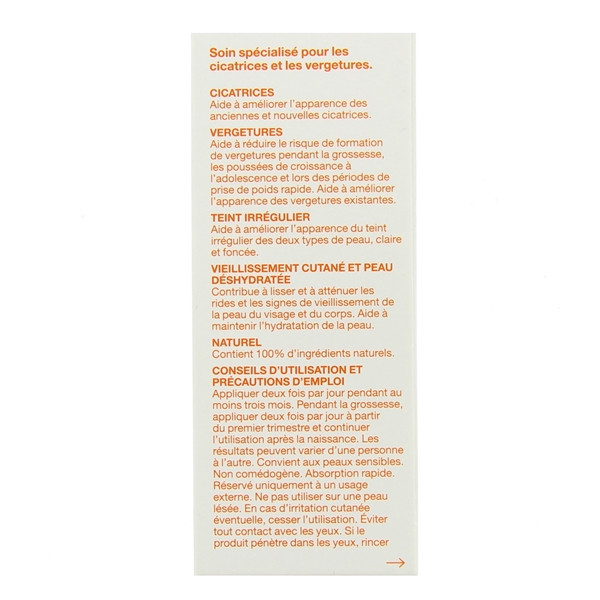 Bi-Oil Huile de Soin Naturelle contribue à l’amélioration de l’apparence d’anciennes et de nouvelles cicatrices. Elle aide à limiter les risques de formation de vergetures durant la grossesse, l’adolescence ou lors d’une prise rapide de poids. Ce soin permet aussi d’unifier le teint irrégulier des peaux claires et foncées. Il permet de lutter contre le vieillissement cutané, d’atténuer les rides et de lisser la peau.
