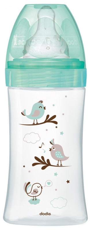 Biberon verre tétine ronde Débit 2 Vert Oiseaux 27