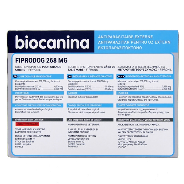 Fiprodog 268mg Spot-on Chiens L x3 pipettes Biocan