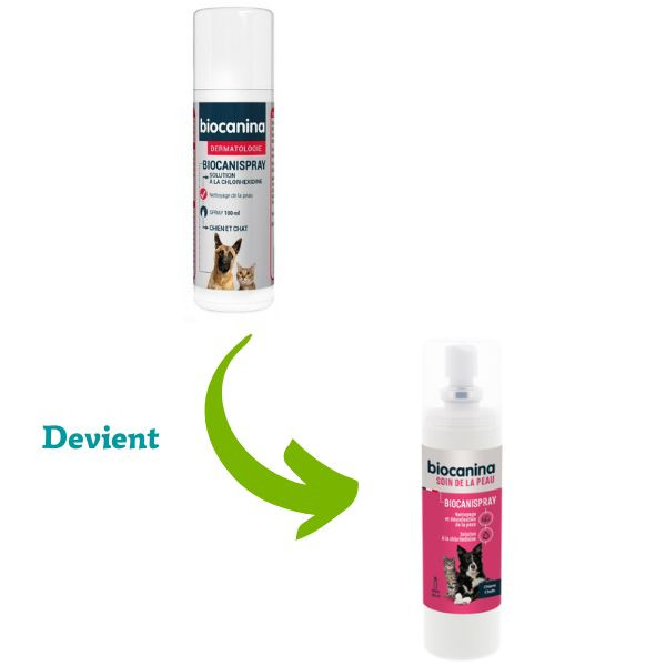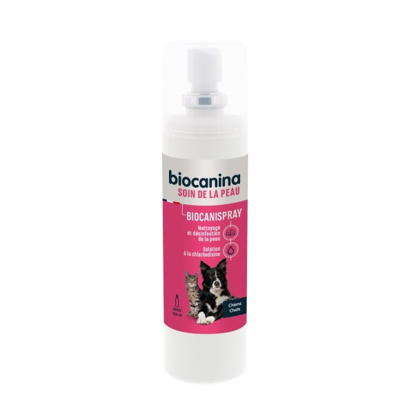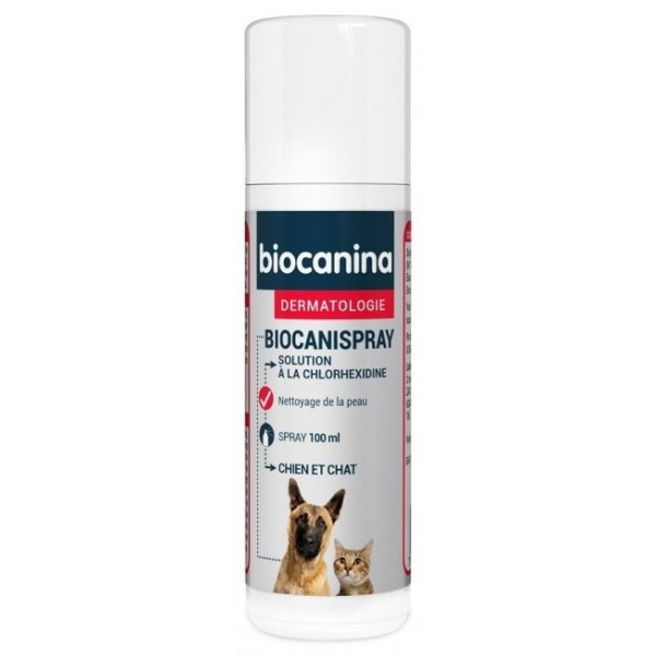 Biocanispray de Biocanina est une solution à la chlorhexidine pour chien et chat. Biocanispray est indiqué pour le nettoyage et la désinfection de la peau.