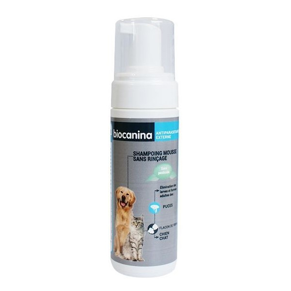Shampoing Dimethicone Chien & Chat 150ml est un produit d’hygiène élaboré par Biocanina pour éliminer les puces, les poux, les œufs et les larves qui nuisent au confort des animaux de compagnie. Ne contenant ni pesticide, ni insecticide chimique, ce shampooing mousse sans rinçage convient parfaitement aux femelles gestantes ou allaitantes.
